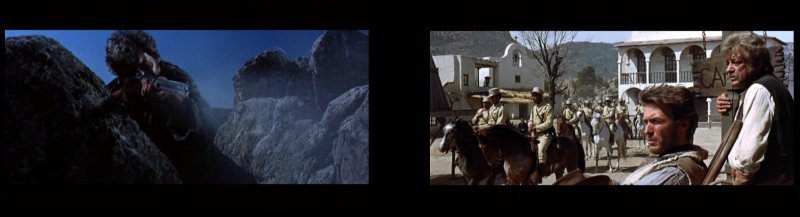 European film-makers are renowned for producing some of the darkest and most nihilistic Westerns ever seen (films like The Great Silence (1969) and Cut Throats 9 (1972)) and although not quite to this level, it is clear how Leone's script would start the ball rolling - the central character Joe is a pure anti-hero, not the grudging hero of many of the American films, but a real cold hearted figure who watches impassively as the groups he has set against each other, fight it out. This concept was so strong that for American television audiences a prologue was filmed to provide some moral motivation for Joe. Leone does allow Joe one scene of unmotivated kindness, but with the hints that the women he helps reminds him of someone he once knew, it just serves to add further depth and mystery to the character.