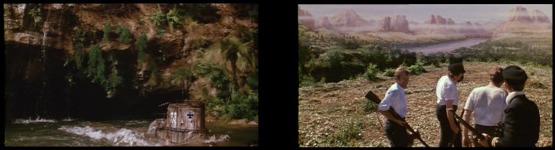 On arrival at the island however, the film slows down somewhat with an overemphasis on the island's prehistoric creatures, leading to an almost comic number of scenes of the sailors killing dinosaurs, on more than one occasion, for no obvious reason. Fortunately the pace does pick up with the discovery of a primitive human and an expedition deep into the island to find oil, providing plenty of action with the discovery of different levels of human tribes. Burroughs' complex evolutionary metamorphosis theme was only lightly covered in his first novel and the screenwriters only touch on it occasionally, but then inexplicably decide to try an explain it all in a quick piece of baffling exposition. The film builds to an explosive volcanic climax that was invented for the screen (or stolen from One Million Years B.C. (1966)) that is certainly exciting although dragging on a little too long, fortunately the novel's coda is retained and neatly wraps the story up.